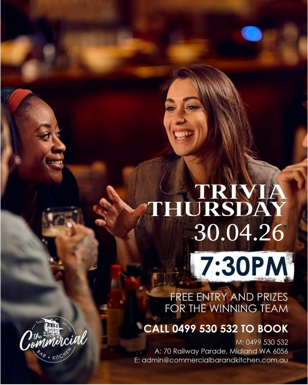 Looking for a function space full of character and history? Get in touch with the team to find out how we can tailor our versatile function spaces for your next corporate or private event. The Commercial Bar and Kitchen is conveniently located walking distance from Midland Train Station, as well as having ample onsite parking.