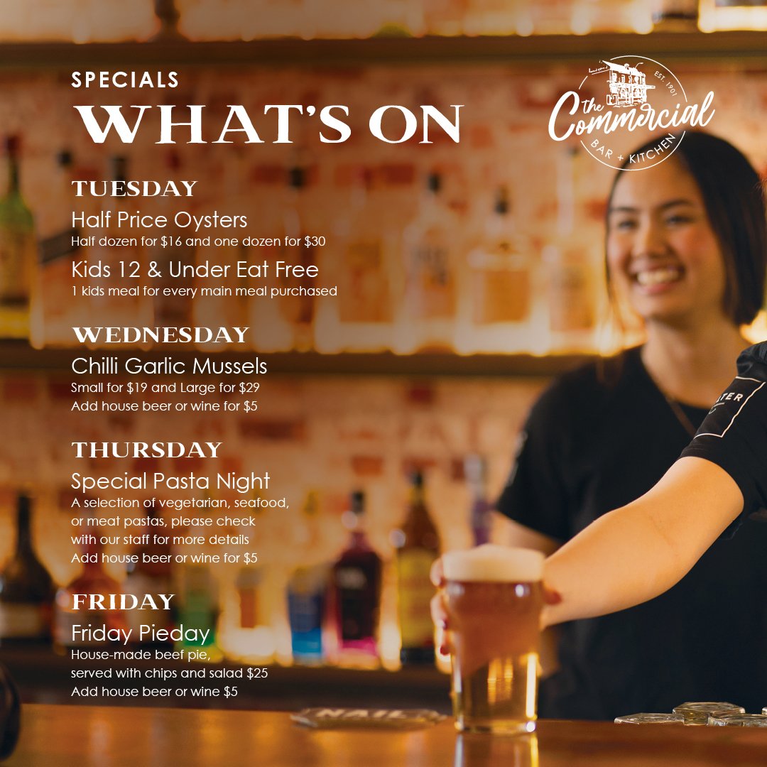 Welcome to The Commercial Bar and Kitchen – a reinvigorated version of your friendly local. Located in the bustling hub of Railway Parade, we have taken an institution steeped in history and lovingly guided it into a modern gastro pub.